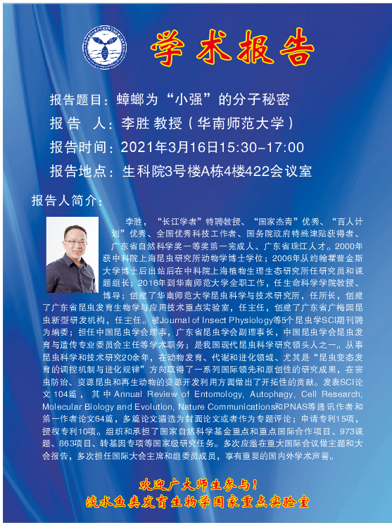学术讲座---华南师范大学李胜教授将于2021年3月16日来实验室进行学术报告